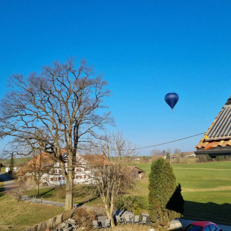 Heute über Göttlishofen. 2 Heissluftballons umschwärmt von einem Ultraleichtflugzeug.