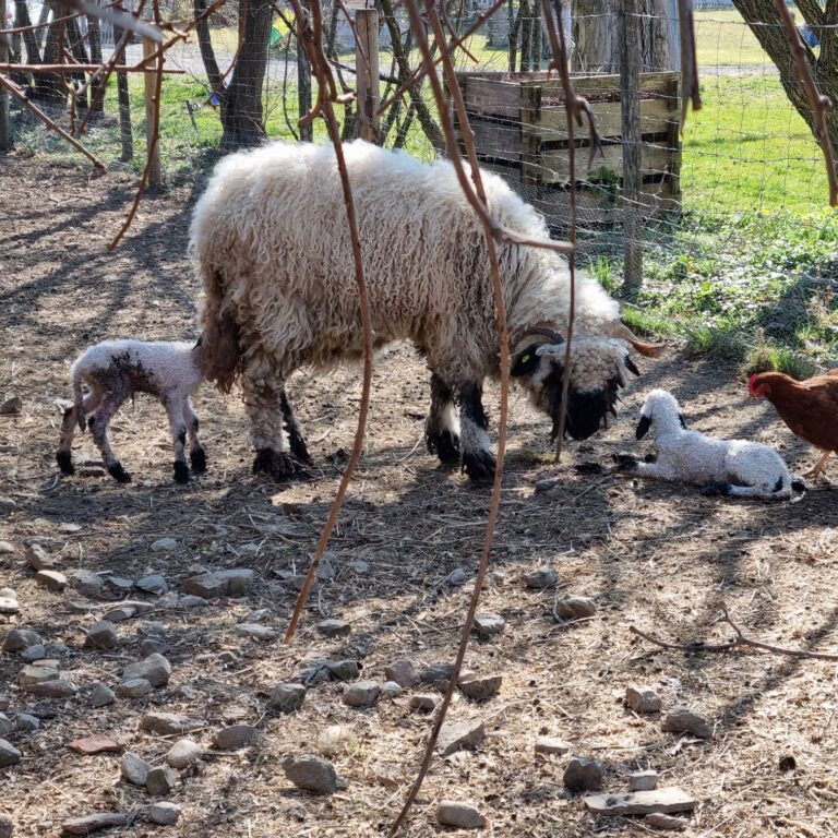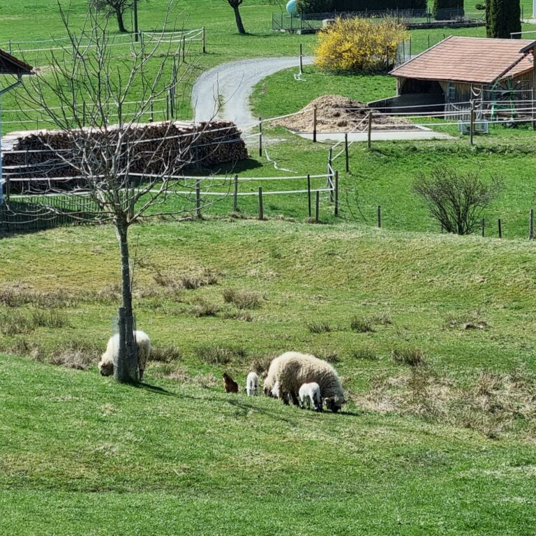 ……in der alten Käserei. Unsere Sunny hat gesunde Zwillinge zur Welt gebracht. Es sind 1 Bock und 1 Auenlamm. Hat jemand Namensvorschläge?