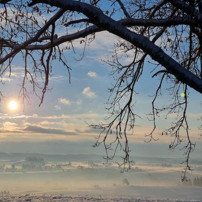 ….. bei uns im Allgäu. Nach einer kalten Nacht haben wir jetzt eitel Sonnenschein.