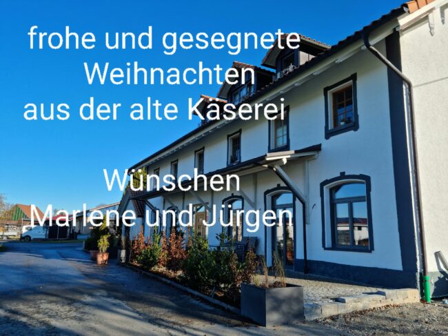 Ein gesegnetes und friedliches Weihnachten  aus der alten Käserei  wünschen  Marlene Gegenbauer und Jürgen Weber