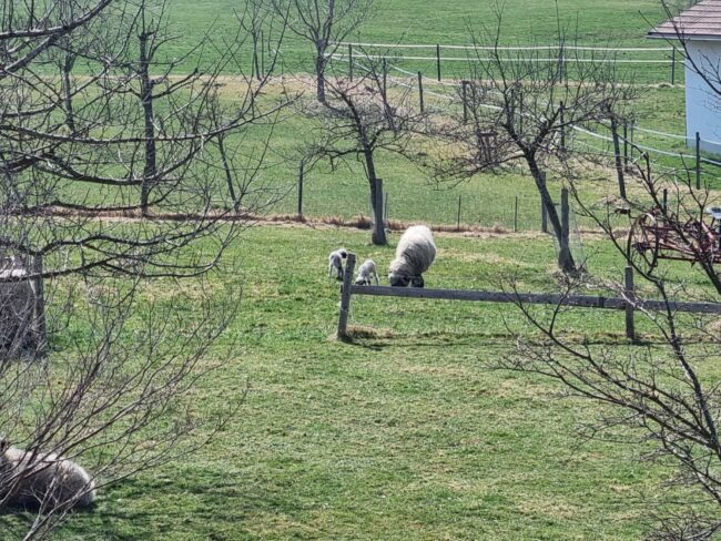 …..raus auf die Weide. Da wir noch ganz klein sind, müssen wir nachts im Stall bleiben. Dort ist es sicherer für uns.
