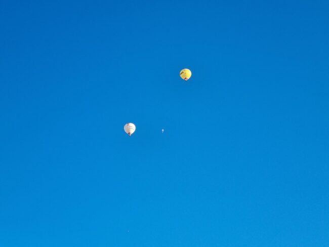 Heute über Göttlishofen.  2 Heissluftballons umschwärmt von einem Ultraleichtflugzeug.
